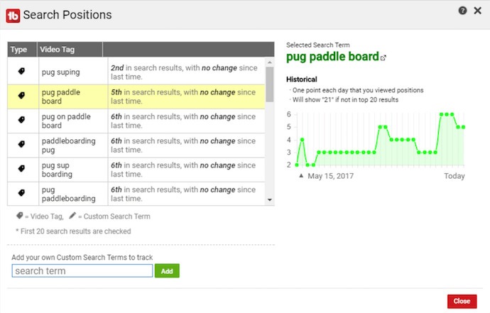 Đây là một tiện ích mở rộng của Chrome, giúp bạn phân tích cách thức và lý do tại sao một số video trên YouTube hoạt động tốt như vậy. Điều này bao gồm các tag mà video đã được tối ưu hóa, thời gian xem trung bình của video đó và thậm chí tốc độ tăng traffic của video đó.